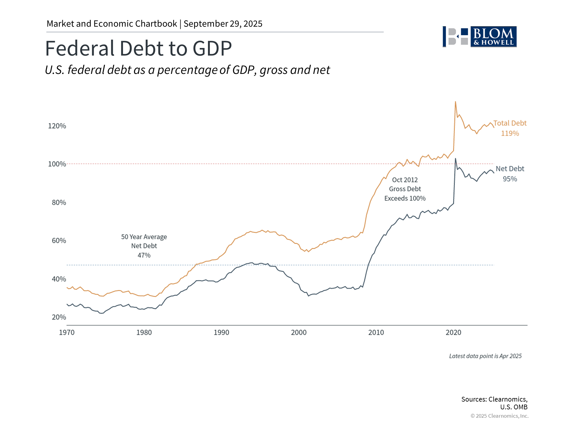 The current situation reflects disagreements over spending priorities, primarily around healthcare. While the immediate funding of the government is the focus, these budget battles reflect deeper differences around the role of government and fiscal responsibility. With federal debt now around 120% of GDP, many agree on the need for fiscal discipline but there is fundamental disagreement as to how this should occur. What makes this situation unique is the administration's directive for agencies to prepare permanent workforce reduction plans beyond typical temporary furloughs. This represents a departure from previous shutdown patterns and could create longer-lasting impacts on the job market and fiscal spending. Note that furloughed federal workers do automatically receive back pay once the shutdown ends, a policy that was enacted as part of the negotiations that ended the 2018 to 2019 shutdown. For some investors, the threat of a government shutdown may blend in with other fiscal issues such as the debt ceiling. The debt ceiling becomes a problem when spending the government has already approved needs to be paid for, but the Treasury Department isn’t authorized to borrow above a certain limit. The only solution in these cases is for Congress to raise the debt limit, or else the government risks defaulting on its obligations. All of these fiscal challenges are one reason the major credit rating agencies have downgraded the U.S. debt below AAA. Fortunately, the One Big Beautiful Bill Act also raised the debt ceiling by $5 trillion, so this problem can be avoided for some time. Markets focus on fundamentals, not political headlines