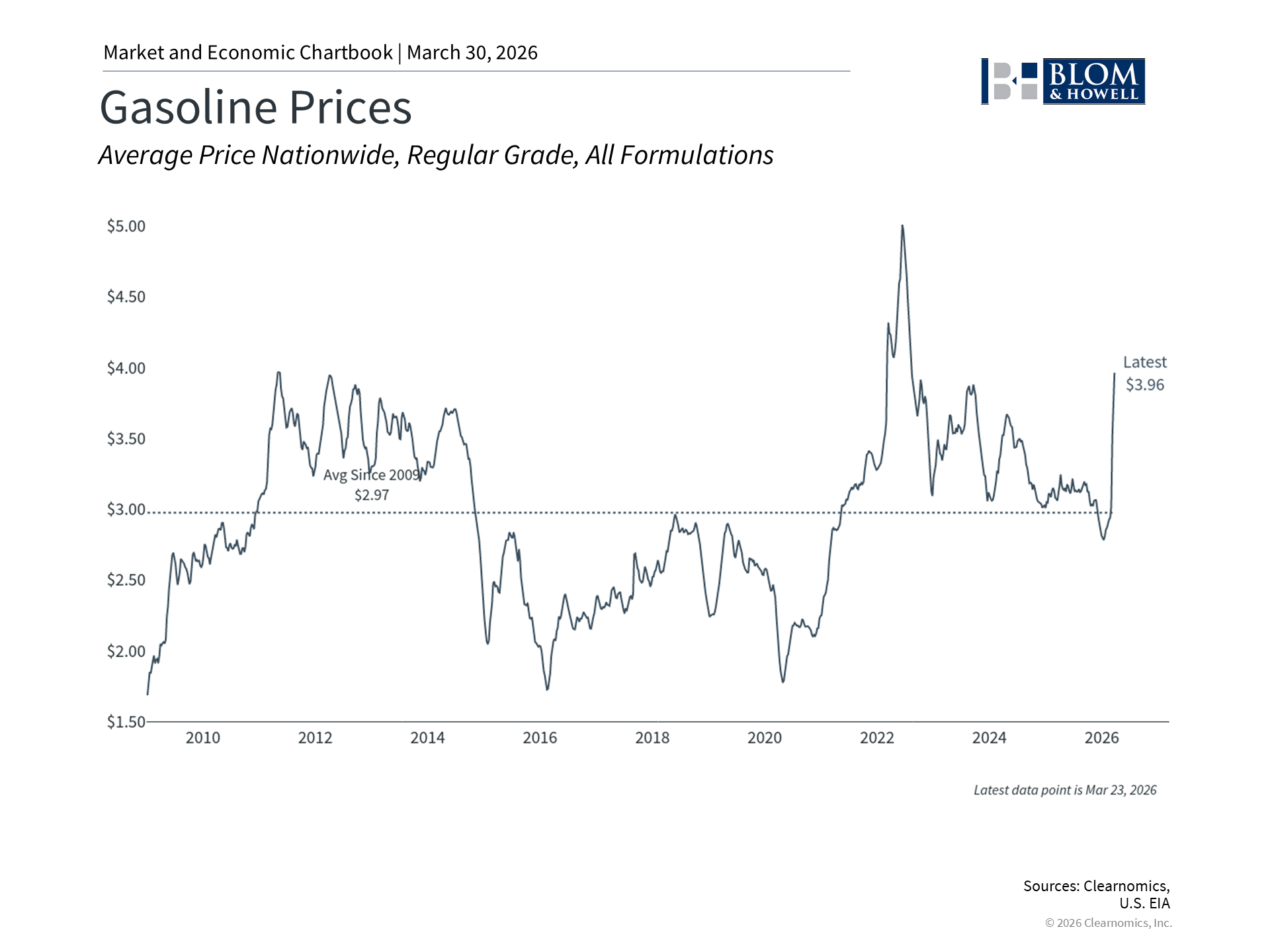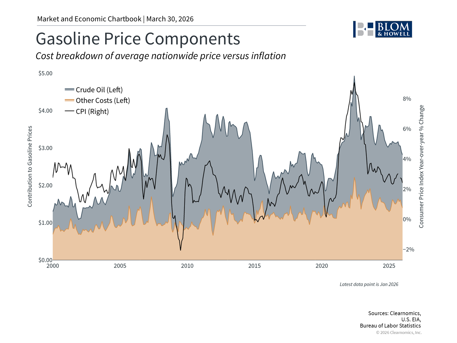 For investors, energy prices will impact headline inflation, since these costs are important components of the headline Consumer Price Index. After several years of improving energy CPI readings, the recent jump in oil and gasoline prices will almost certainly push headline inflation higher in the coming months. Organizations such as the OECD now estimate that U.S. inflation could rise faster than expected this year. This matters for several reasons. First, consumers are still recovering from the inflation surge after the pandemic. Second, both stocks and bonds have historically faced headwinds when inflation rises unexpectedly, as it raises costs for companies and reduces the real value of fixed income payments. That said, markets have demonstrated considerable resilience over the past several years even in challenging inflationary environments. Third, and perhaps most immediately relevant for financial markets, rising inflation complicates the Federal Reserve's decision-making. Markets have already shifted their expectations, with traders now assigning a greater probability to the Fed holding rates steady or even raising them rather than cutting. This reversal in expectations has introduced additional uncertainty for both equity and bond markets, especially as the Fed changes leadership in mid-May. Economists generally view these types of “supply-side” shocks as temporary. This is not a prediction that high oil prices will be short-lived, per se, but instead focuses on the fact that high oil prices should fade once supply comes back online. While the situation is still challenging for consumers, it is quite different from the 1970s. Specifically, the U.S. is the largest oil and natural gas producer, and the Fed has significantly more credibility in anchoring inflation expectations, making the current economic and financial market situation more stable than in the past. For investors, this means that the best approach continues to be staying invested with a well-constructed portfolio and financial plan. This served investors well during the last inflation spike in 2022, and is still likely the best way to achieve financial goals. The bottom line? Rising gasoline prices are a burden for consumers and will likely drive headline inflation higher. However, history shows that markets and the economy have navigated past energy shocks. Investors should maintain a long-term perspective, avoid overreacting to daily headlines, and stay focused on their financial plans. |