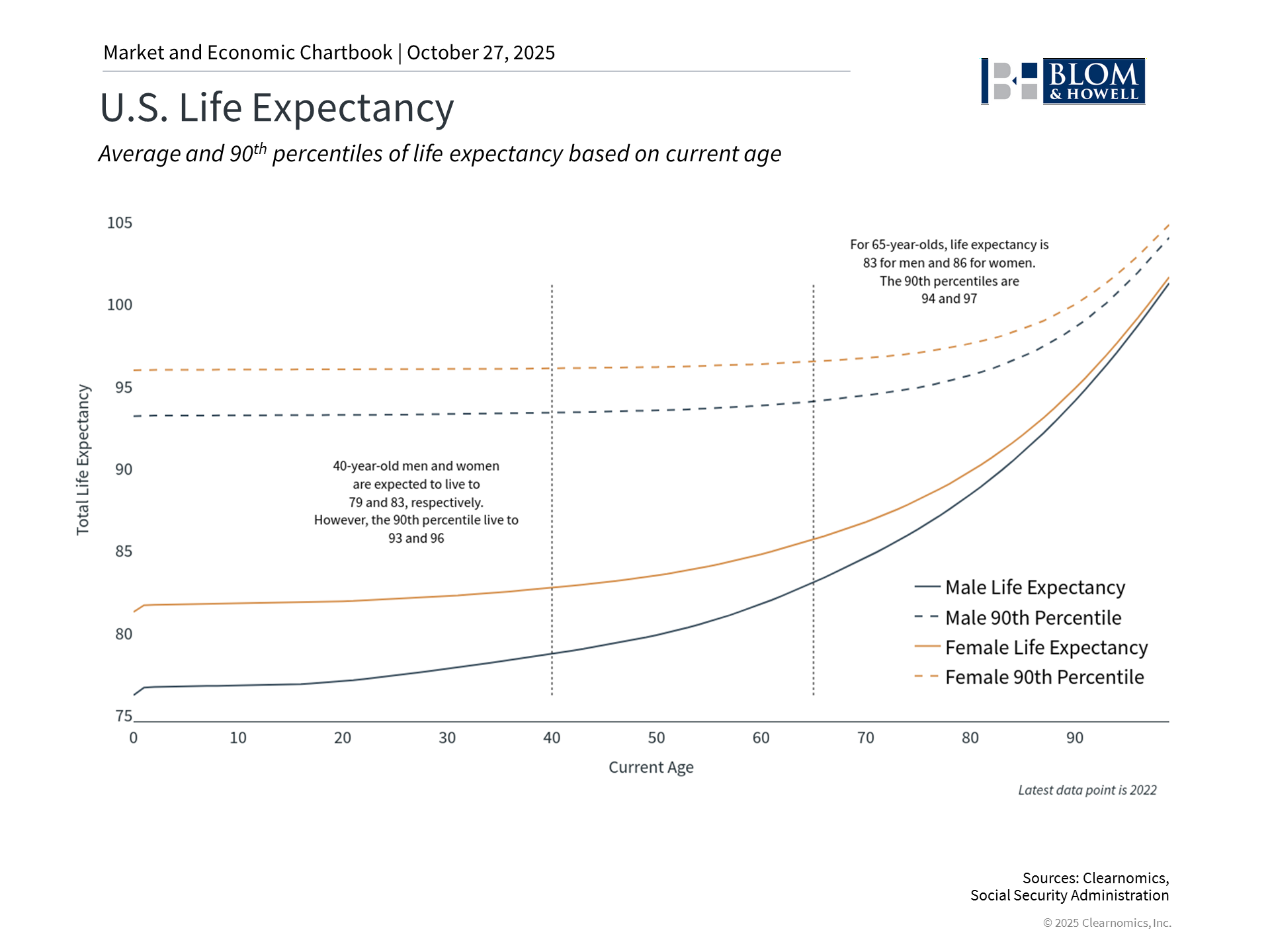 Just as gains can compound over time, so do losses if the purchasing power of a portfolio does not keep up with inflation. This is even more important today since retirees must also plan for the possibility of living longer than previous generations. This means that life expectancy is an important input to any financial plan. According to the latest Social Security Administration data, 40-year-old men and women have an average life expectancy of 79 and 83, respectively. However, for those who make it to 65 years of age, their life expectancies increase to 83 and 86. These are just averages - those in the 90th percentile could live to 94 and 97, respectively. While the opportunity to enjoy a longer, healthier retirement is a wonderful development over the past century, the difference between a 20-year retirement and a 30-year or longer retirement has dramatic implications for portfolio construction and withdrawal strategies. This is sometimes known as “longevity risk,” a challenge that is asymmetric since running out of money during retirement is far more problematic than leaving assets to loved ones or charitable causes. So, while many prioritize income-generating investments like bonds when it comes to retirement planning, it’s also important to maintain growth-oriented assets like stocks. It also creates financial challenges that make thoughtful planning even more valuable. Understanding how to structure portfolios for multi-decade retirement periods, while managing withdrawal rates and adapting to changing market conditions requires expertise that goes well beyond simple rules of thumb. Lower short-term interest rates also reduce income from cash